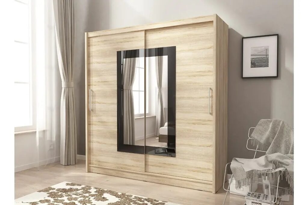 The Puno Wardrobe stands out as a contemporary masterpiece, combining elegant design with practical storage solutions. Its most striking feature is the sliding door system, which not only saves space but also adds a touch of sophistication to any bedroom. The centerpiece of this wardrobe is undoubtedly the full-length mirror integrated into both doors, offering convenience and enhancing the sense of space in your room.
